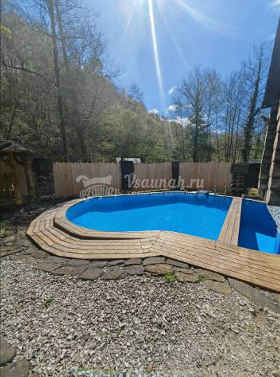 Два бассейна с холодной водой из собственной скважины.